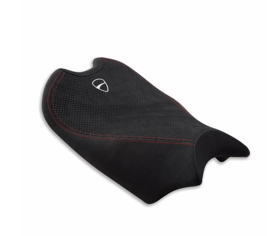Panigale V4のシートに跨り、あらゆるカーブを思う存分に楽しむためにデザインされたアクセサリーです。標準シートに比べてシート高が高くなります。高密度フォームと厚みのあるパッド、テクニカルファブリック製カバーを採用し、ライダーをしっかりとサポートしてくれるため、疲れを感じ難く、ライディング時の快適性が大幅に向上します。