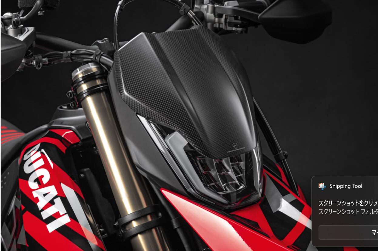 カーボンファイバーの軽さ・剛性とシャープなラインを見事に融合させたアクセサリーが、新型 Hypermotard の秘めたレーシング・スピリットを解き放ちます