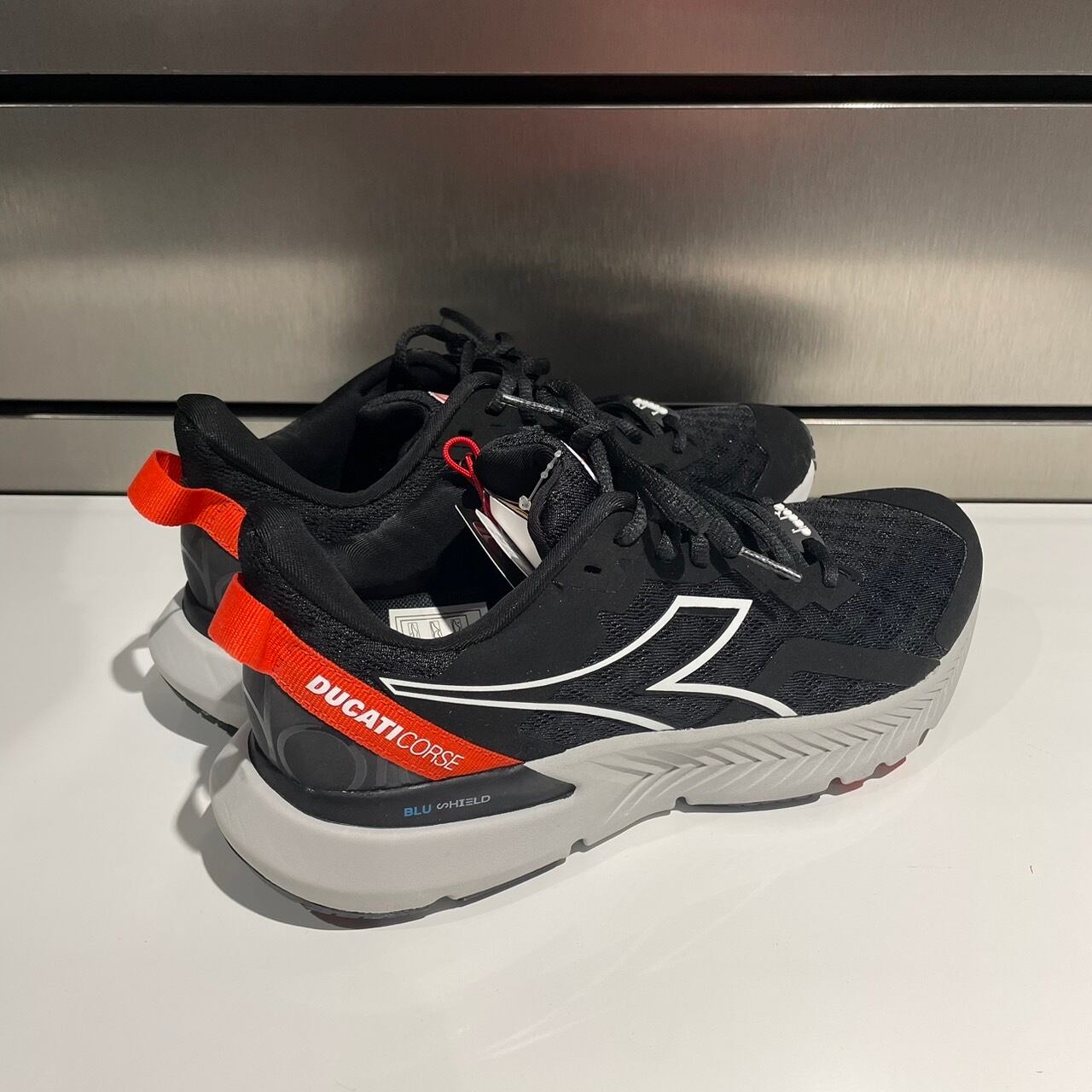 Diadoraと共同開発されたGP Team Replica 23スニーカーは、Ducatiらしいスタイルと、スムーズで完璧なバランスのライディングを可能にしてくれるフォルムが特徴です。Diadora Blushield®テクノロジーを採用したGP Team Replica 23スニーカーは、快適さとスタイルを完璧な形で両立させています。サーキットのグランドスタンドで情熱に身をまかせるにも、フリータイムに着こなすにも理想のパートナーです。